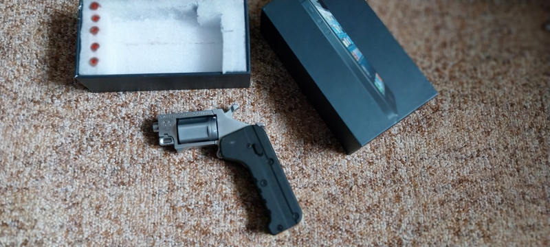 Sanftes Entfalten des Pistolenkörpers, zusammenschiebbarer Pistolenkörper, der nur die Größe einer Kreditkarte hat.