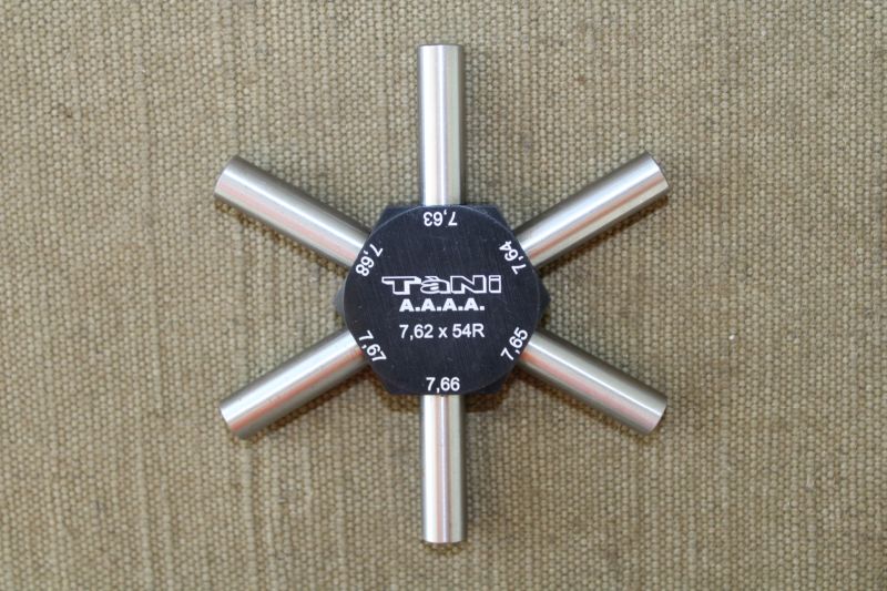 Verkaufe eine Lauflehre zum Feststellen der Mündungsvorweite für Kal. 7,62x54R. Die Meßdorne haben Maße von 7,63mm bis 7,68mm.