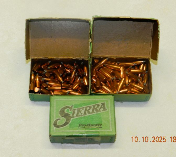Ich biete 235 neue Geschosse in geöffneten Originalschachteln der Firma Sierra zum Wiederladen an.