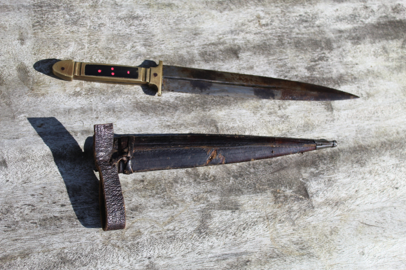 antiker DOLCH mit MESSINGGRIFF Lederscheide , 27 cm ges.länge