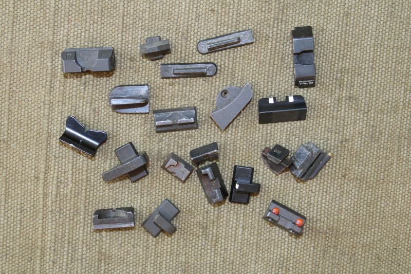 Verkaufe gebrauchte Korne (10 Stück) und gebrauchte Visiere (10 Stück), alle aus Metall.