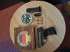 Abschußbecher Pyromunition 15mm / Kleine Reinigungsbürste / Holzkästchen mit Aufklleber ( siehe Bilder ) / 50 St. Schreckschuß / Gaspatronen 10 St. /