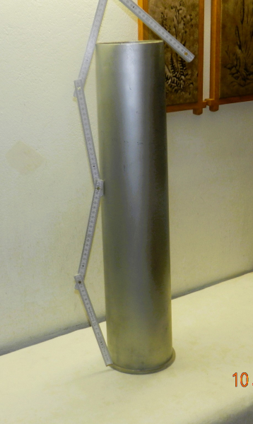 Hier biete ich eine abgeschossene Hülse eines großen Geschützes an. Die Hülse ist völlig leer, d.h. ohne Pulver und Zündsatz. Sie besteht aus Stahlblech : Höhe = 680 mm, Durchmesser = 130 mm, Gewicht 6,3 kg In weiteren Auktionen biete ich Wiederladegeschosse, weitere Hülsen, Zubehör usw. an. Viel Erfolg beim Bieten
