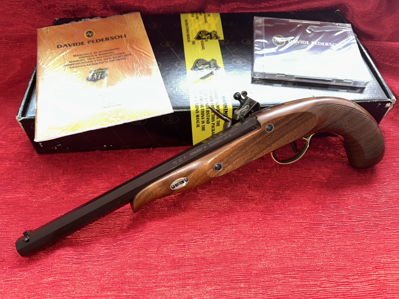 Aus Sammlung die Gelegenheit!Fantastisches,frühes Exemplar von Pedersoli,ungeschossen,praktisch wie aus dem Laden,war reines Vitrinenstück wie aus den Bildern ersichtlich.Perfekte Verarbeitung &Qualität,originale Bräunliche Lackierung,wunderschönes Holz und Bunthärtung,Abzug /Schloss sehr gut,Matchqualität.Lauf mit tiefen,scharfen Zügen,sehr gute Handlage,Länge 43cm.Die Bilder als Beschreibung beachten.Wird so in dieser Güte leider nicht mehr gebaut!Von privat ab 1€ ohne Rücknahme.EU-Ausland Versand 20€.