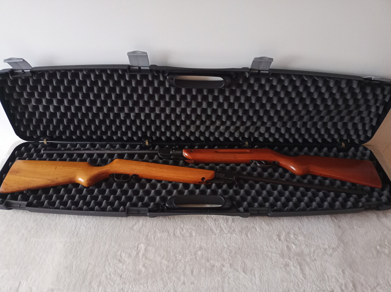 Ich verkaufe zwei Haenel Knicklaufgewehre, inklusive Waffenkoffer. 1 x Haenel Modell III-56 mit "S" Stempel und Visierbefestigung. Dieses wurde in der Vergangenheit vom Büchsenmacher gewartet und revidiert. Seither nicht beschossen. Funktionstüchtig und guter gepflegter Zustand. 1 x Haenel Modell 303, dieses wurde bisher vom Büchsenmacher noch nicht aufgearbeitet, bildet aber eine gute Grundlage zum Restaurieren. 1 x abschließbarer Waffenkoffer. Für Rückfragen oder weitere Bilder (hier gingen leider nur 6 Bilder einzustellen) bitte melden.