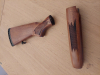 Schaftsatz für Mossberg 500, 590 aus Holz. Leichte Gebrauchsspuren sind vorhanden, fallen aber nicht ins Auge. Sehr griffig und führig und sieht an der Waffe sehr gut aus.