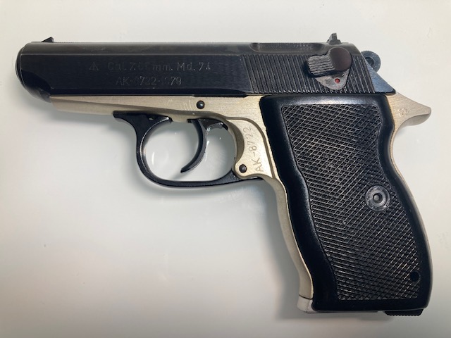 Verkaufe eine Selbstladepistole MD 74 im Kaliber 7,65 Browning mit insgesamt zwei Magazinen. Wurde in der Zeit von 1974 bis Mitte der 90er Jahre in Rumänien als Nachbau der Walther PP hergestellt, allerding mit einigen Veränderungen. Im Unterschied zur Walther PP wurde der Rahmen aus Dur-Aluminium produziert um wesentlich an Gewicht zu sparen. Gewicht dadurch leer nur 520 Gramm und geladen 580 Gramm. Witziger Weise könnte man das Ding auch in der Badehose tragen und die zieht nicht mal runter ! ;))) - Nutzung durch rumänische Polizei bis in die 2000er aber noch interessanter ist die dienstliche Nutzung seit den 80er Jahren beim Ministerium für Staatssicherheit und dem Ministerium des Innern der DDR; hier vor allem als Dienstwaffe bei der Kripo und bei Spezialeinheiten als persönliche Waffe bei ständigen Waffenträgern genutzt - Self-Defence at it's best. Sicherlich hatten sich ein paar Partei-Bonzen oder andere wichtige Staats-Aparatschiks dieses kleine Ding auch irgendwie zugelegt - Man wußte ja nie so richtig, was der Klassenfeind so vor hatte ... Zum Kauf wird natürlich eine entsprechende Erwerbserlaubnis benötigt (WKB Grün mit Voreintrag Kat.B, SL-Pistole 7,65 mm Browning; WHL, Sammler-WBK, u.ä. zugelassenen Erlaubnisse) Nach Ersteigerung erfolgt unaufgefordert die Übersendung der Kopien BPA, Erwerbserlaubnis und die Erreichbarkeit der für der Erwerber zuständigen Waffenbehörde. Verkauf in EU durchaus möglich, jedoch über einen in D zugelassenen und durch den Erwerber auf eigene Rechnung zu bestimmenden Exporteur. Weiteres siehe myGun. Anfragen über email werden beantwortet, da dieses Gerät auch relativ selten bzw. fast unbekannt ist. Hinweis - Lauflänge über 3 Zoll - also für Sportschützen (z.B. BDS) problemlos möglich.