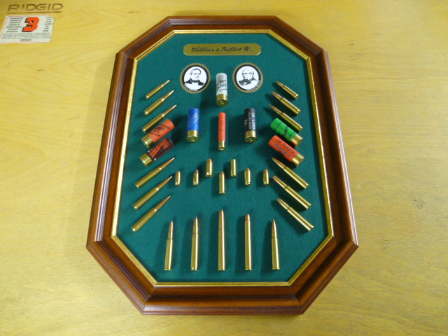 Sellier & Bellot - Munitions - Schautafel - Mix Board (Image) - mit 32 Patronen bestückt - 17 Büchsenpatronen, 8 Schrotpatronen, 5 Pistolenpatronen und 2 Revolverpatronen .**********Bild 6 führt die verwendeten Patronen auf. Ich hoffe, sie richtig identifiziert zu haben.***********Exklusiv und überwiegend in Handarbeit gefertigte Munitionsschautafel der traditionsreichen Firma Sellier&Bellot. Verwendet wurden ausschließlich Originalhülsen und -geschosse. Die Patronen enhalten kein Treibmittel und die verwendeten Zündhütchen sind ohne Zündmasse.***********Zustand: gebraucht - gut. Die .45 ACP - Patrone ist etwas lose (nicht 100%ig stramm auf dem Board). Wenn die Schautafel hängt und die Patrone ausgerichtet ist, bleibt sie in Position. Optisch fällt nichts auf. Wenn man die Papprückwand öffnen würde, könnte man dies beheben.*********Abmessung: 57x42,5cm (HxB).**********Wer noch ein Bild von der Rückseite der Munitions-Schautafel haben möchte, bitte melden.*********Privatverkauf ! Keine Garantie ! Keine Gewährleistung ! Keine Rücknahme !********Kein Verkauf ins Ausland ! No sale abroad !********Kein Versand ins Ausland ! No international shipping !**********Versand erfolgt als DHL-Paket für 15,- EUR.