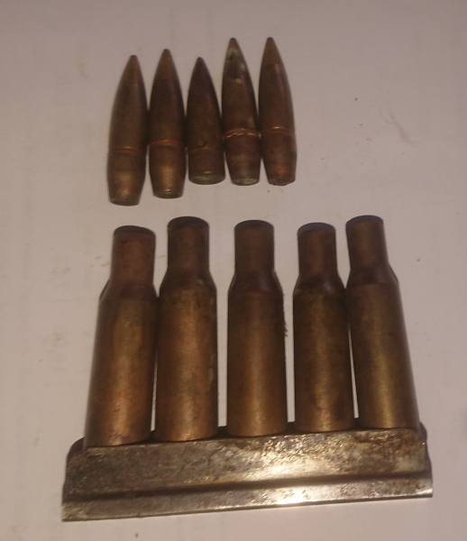 5 originale Deko Patronen für das Mosin Nagant mit Ladestreifen und Weichkerngeschoss