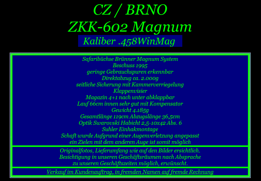 CZ BRNO ZKK-602 Safari Büchse Kaliber .458WinMag