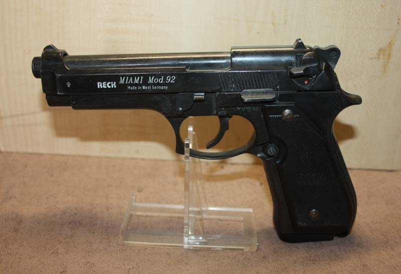 Hallo, versteigere hier aus einem Nachlass eine Reck Miami Mod. 92 cal. 8mm P.A.K. PTB 481/2 in guten, gebrauchten und funktionierenden Zustand. Die Funktion der Waffe wurde nur OHNE Munition getestet! Waffe gibt es nur so wie auf den Bildern zu sehen, kein Zubehör vorhanden. Die Waffe wird per DHL (Versicherter Versand) und anschließender Sendeverfolgungsnummer an Sie versendet. Falls das Paket nach Versand verloren geht, liegt die Haftung bei DHL und nicht beim Verkäufer!