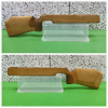 1.Luftgewehr Schaft HAENEL 312. Verkauf als Bastler Ware, da er bereits einen Riss hatte und nun verschraubt/Verklebt ist. Da klappert nichts ! Er kann so wie er ist eingesetzt werden. In Mühevoller Arbeit ist bereits der Lack entfernt worden. Fertig zur Beize oder zum Ölen. Der Riss ist fast nicht Sichtbar. Trotzdem VK als Defekt.