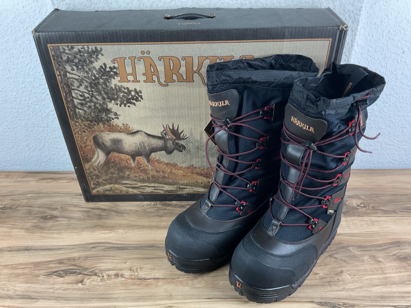 Angeboten werden 1 Paar nagelneue ungetragene Winterstiefel von HÄRKILA Inuit GTX 15" XL insulated in der Größe 43, US 10. Beste Qualität und Verarbeitung! Extreme Isolation bis zu -90C°! Atmungsaktiv mit GORE-TEX! Farbe: Dark Brown.