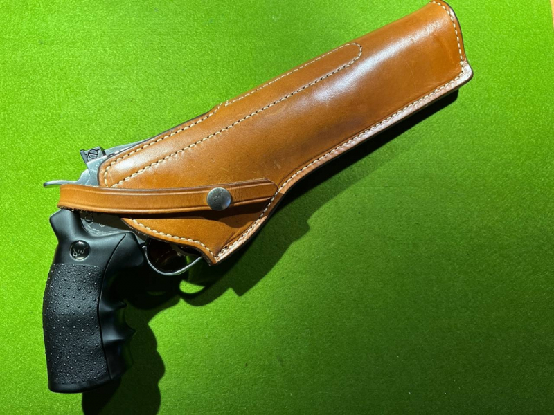 Die Anpassungsmöglichkeiten sind aufgrund der Lederfestigkeit etwas aufwendig, und obwohl das Holster offensichtlich für DA- Revolver gedacht zu sein scheint, könnte es nach Bedarf auch für moderne SA angepasst werden, hier aus dem Netz ein paar mögliche Kandidaten, Magnum Research BFR 500