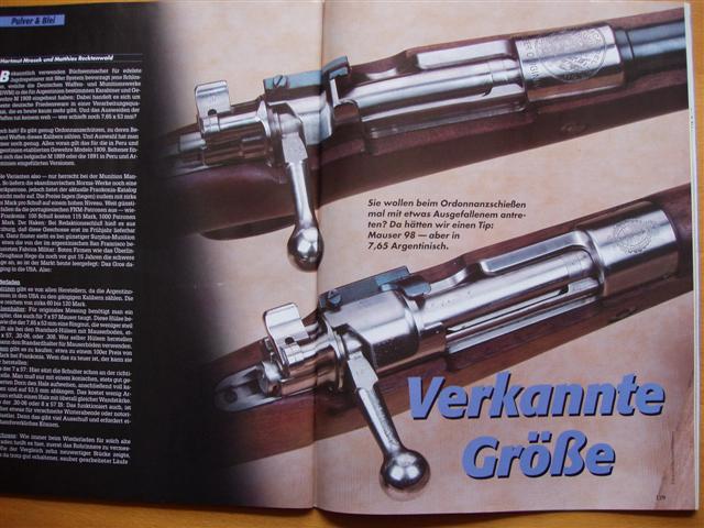 Für Ordonnanzschützen, Waffenfreunde/Waffensammler +++ angeboten wird ein Visier – Heft/SWM-Teil; mit einem sehr interessanten Bericht für Ordonnanzschützen und besonders für Besitzer eines ** Mauser 98 - in 7,65 Argentinisch ** -- Sie wollen beim Ordonnanzschießen mit etwas ausgefallenem antreten ? -- Ein Tip -Mauser 98 aber in 7,65 Argentinisch. Es ist ein interessanter, ausführlicher Bericht für Wiederlader - ** Ladedaten für die Patrone 7,65 x 63 Argentinisch - mit Ergebnissen vom Schießstand mit verschiedenen Pulversorten und Geschossen, +++ und es gibt noch weitere interessante Berichte auch im SWM Teil - z.B.über ** Vorderlader-Duellpistolen ** oder für 08 Freunde ein Bericht ** 100 Jahre Parabellum-Pistole in der Schweiz ** +++++ Das Heft ist gebraucht ; befindet sich aber in einem sehr guten Zustand. +++ Der Versand erfolgt als Großbrief mit DHL (unversichert) ; die Versandkosten gelten nur für Deutschland.+++ Bieter aus dem Ausland bitte Versandkosten vor Gebot erfragen. +++ Versandrabatt möglich, sehen Sie auch meine anderen Angebote. +++ Privatverkauf, daher keine Gewährleistung, Garantie oder Rücknahme. 106 +++ Fragen bitte mailen.