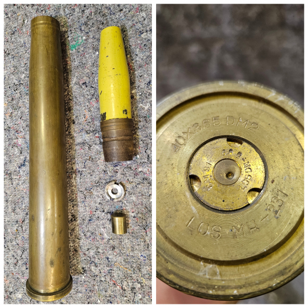 Schöne BW Nato 40mm Bofors Patrone leider ohne Zünder..alles deko und Inert
