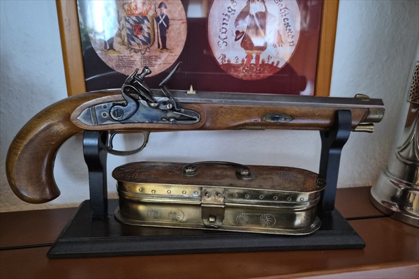 Alte Steinschlosspistole zu verkaufen,Pistole war nur als Deko im Regal,komplettes Zubehör anbei,nur Pulver fehlt.