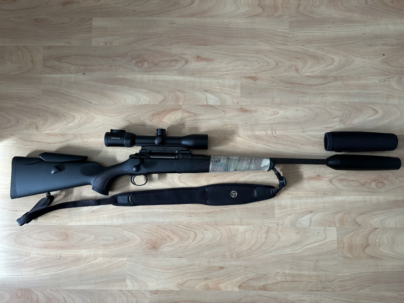 Zum Verkauf steht eine neuwertige Sauer XTA Highland im Kaliber 30-06. Darauf montiert ist ein Sauer Titan 3D Schalldämpfer.