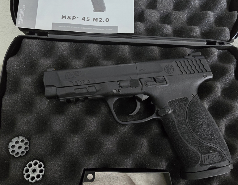 Hallo, biete hier eine Smith&Wesson M&P 45 M2.0, CO2. 4,5mm Diabolo, schwarz. Die waffe ist in einem neuwertigen zustand, keinerlei gebrauchspuren. Wurde nicht geschossen. Mit dabei ein koffer, anleitung und 2 laderinge. Waffe hat kein Blowback und ist aus Metall und Kunstoff. Waffe wurde sehr gepflegt.