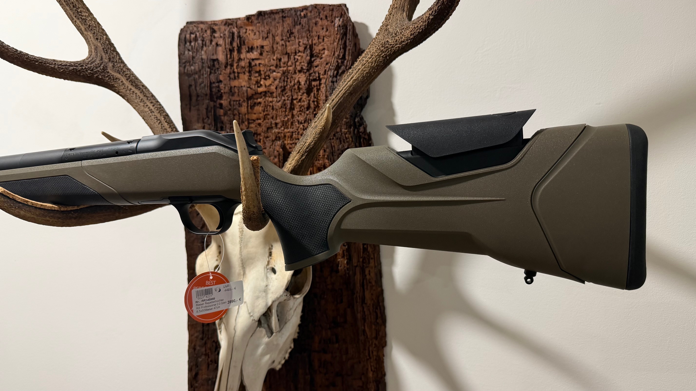 Der Schaft ist serienmäßig für Rechts- und Linksschützen geeignet und verbessert durch seine steilere Positionierung der Schusshand den Anschlag und minimiert die Schützenstreuung. Der fest verbundene, gebettete Schaft und das Gehäuse gewährleisten eine dauerhaft präzise Schussleistung.