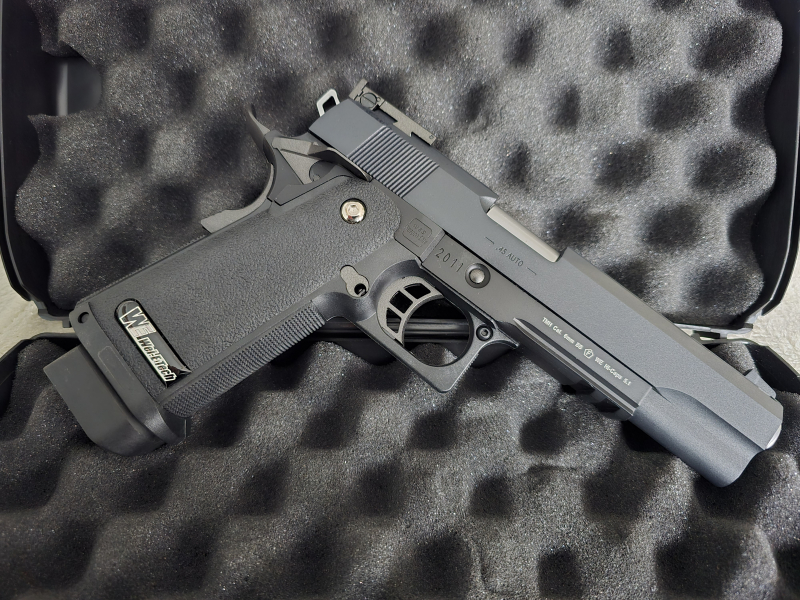 Hallo, biete hier eine WE hi-capa 5.1 elite .45 auto. 6mm BB, Gas, Schwarz. Die waffe ist in einem neuwertigen zustand, keinerlei gebrauchspuren. Wurde nicht geschossen. Mit dabei ein koffer. Waffe hat Blowback und ist aus Metall und Kunststoff. Waffe wurde sehr gepflegt.
