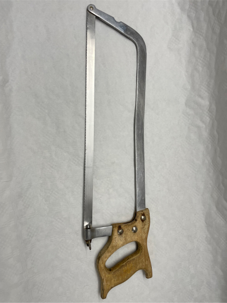 1 große Knochensäge, Edelstahl, rostfrei, Sägeblatt 48 cm lang, mit Holzgriff abzugeben.