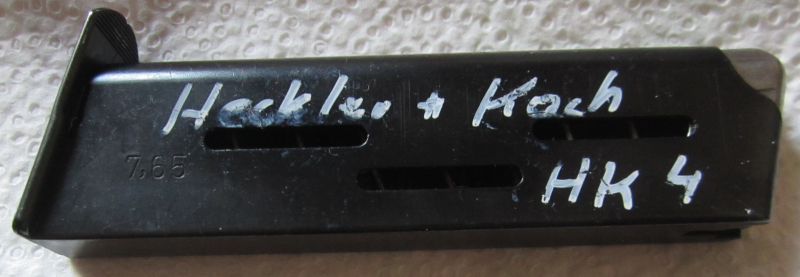 1 Magazin Heckler & Koch im Kaliber 7,65 Browning ( 9mmk geht wohl auch)