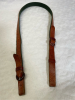 1 Gewehrriehmen, Leder/Leinen, braun/grün, Breite 2 cm, abzugeben.