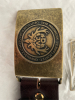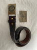 1 neuwertiger Gürtel, Leder braun, 114 cm lang, 4 cm breit, 2 Messingschnallen (DJV, dem Waidwerk verpflichtet / Waidmannsheil, kämpfende Hirsche) abzugeben.