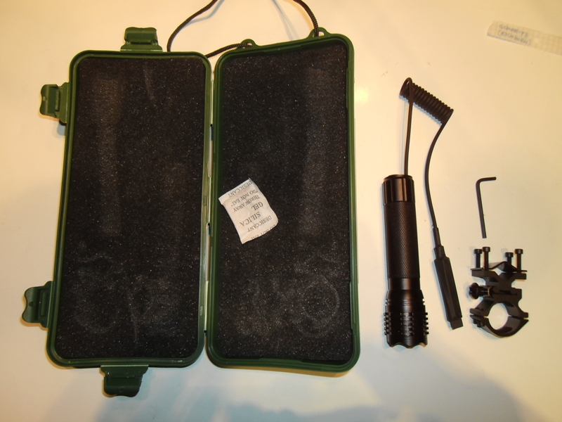 Bearstep Taschenlampe. Hochwertige LED-Taschenlampe mit Kabelschalter und Universalhalterung. Sehr hohe Lichtausbeute und geringer Energiebedarf. Für den Betrieb werden 3 Batterien AAA benötigt (nicht im Lieferumfang enthalten). Lieferung in praktischer , fest verschließbarer Kunststoffbox mit Schaumstoffpolsterung. Länge 25 cm, Breite 12 cm, Höhe 7 cm. Taschenlampe Farbe schwarz. Länge: ca. 14 cm, Ø: ca. 3 cm, Gewicht: 115 g. Leuchtkraft: 100 Lumen. Unbenutzt. (Neupreis 17,99 laut Askari.)