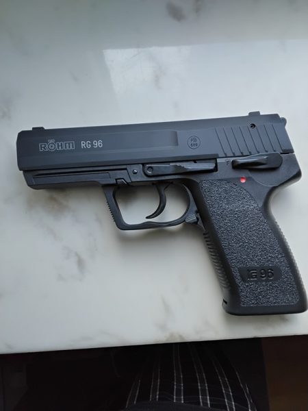 Schöne, neuwertige Pistole Fabr. Röhm Modell RG 96 Kal. 9 mm P.A.K. PTB 699