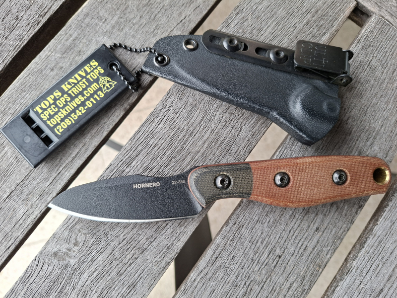 Tops Hornero, Stahl 1095, Micarta Griff, neuwertig. Kydex inkl. Ulticlip