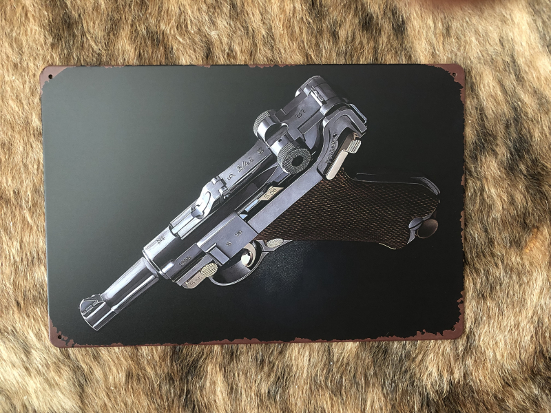 Schild Photo Pistole 08,Blech, sehr stilvoll ,ideal für Ihre Sammlung, Jagdhütte oder Schützenheim o.ä. 20 x 30 cm , sehr dekorativ , Versand per Hermes, EU-Bürger bitte Versandkosten vorher abfragen oder bei Hermes DE prüfen