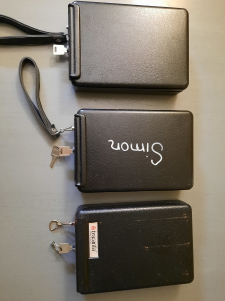 2 Kassetten sind innen ausgekleidet, kaum Gebrauchsspuren (eine Kassette mit "Simon" beschriftet)
