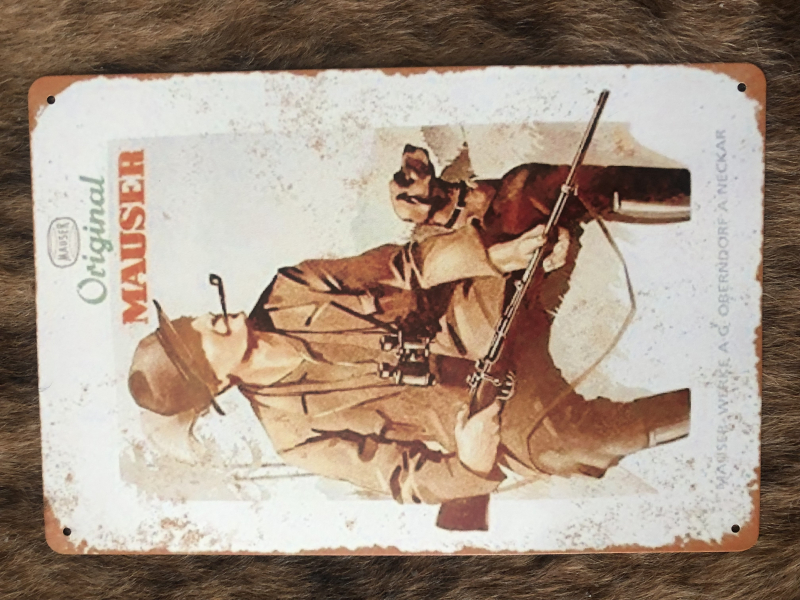 Mauser Repro Werbeschild ,Blech, aus dem letzten Jahrhundert ideal für Ihre Sammlung, Jagdhütte oder Schützenheim o.ä. 20 x 30 cm , Versand per Hermes, EU-Bürger bitte Versandkosten vorher abfragen oder bei Hermes DE prüfen