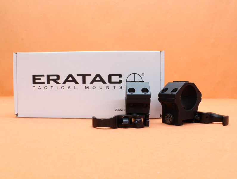 Era-Tac QD Montageringe 30mm (T1003-0010) mit Hebel Alu schwarz matt für Picatinnyprofil BH=10mm (Schnellspann-Aufkipp-Montageringe)