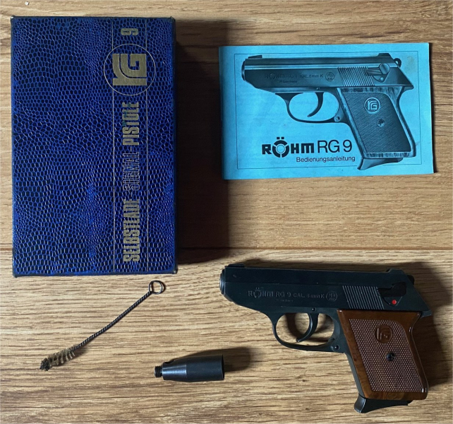 Sie bieten hier auf eine alte sehr schöne gebrauchte RÖHM RG 9 Schreckschusspistole für 8mm Patronen
