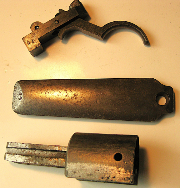Angeboten werden drei Ersatzteile für einen K98. Ein Bajonetthalter (leider kein schöner Zustand), ein Magazindeckel (Stahl) und ein Abzug mit Waa-Stempel. Die Bilder sind Bestandteil der Auktion. Dieses ist ein Privatverkauf, daher keine Rücknahme oder Garantie.