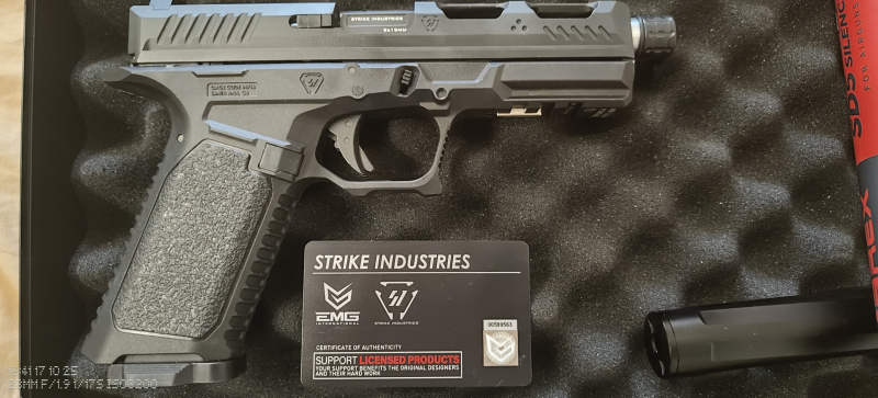 Ich verkaufe hier eine Set Neuwertig ( 2 Magazine verschossen, gekauft 06.2025 ) in Top Zustand und OVP. Wegen Umstieg auf Langwaffe schweren Herzens abzugeben. schießt hervorragend, mit hoher durchschlagskraft, tollem Sound und guter Präzision, keinerlei Hänger oder Probleme, läuft wie ein Uhrwerk Die Waffe ist ein Lizenznachbau der Legendären Strike Industries P80, basierend auf Glock 17 und bekannt als GhostGun, in Top Qualität und komplett originalgetreu. Einige Teile wie Outer Barrel und Tuningteile für G17 Airsoft oder Luftdruck passen auch hier