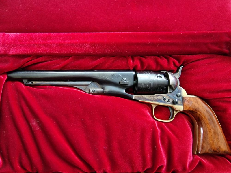 Aus dem Nachlass meines Mannes: ein makelloser, wunderbar erhaltener Revolver, auf dem ich ausser dem PTB-Stempel 361 keinerlei Angabe zu Hersteller oder Modell finde. Nach etwas Recherche denke ich, es könnte ein Army Colt von Pietta sein, bin mir aber absolut nicht sicher. Falls jemand mehr Ahnung hat, bin ich offen für Informationen!