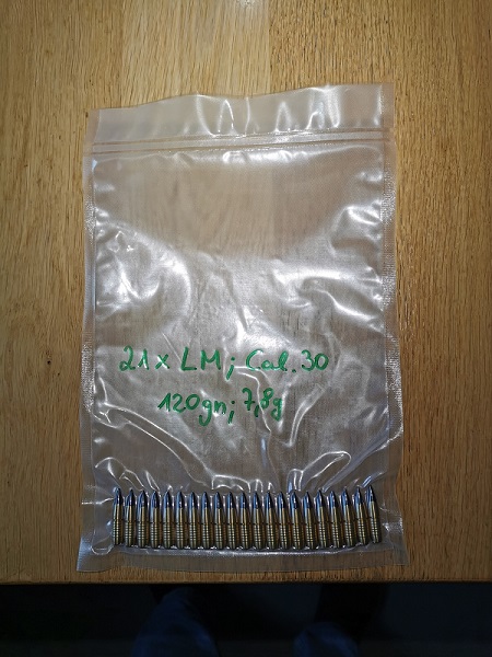 Geschosse sind im Kaliber 7,62mm (.30) und 7,8g (120gn) schwer