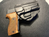 mit einer auch passenden Attrappe der größeren Schwester P226. Offen am Lauf, kommt wie auf den Bilder zu sehen.