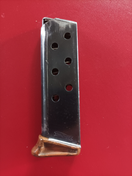 Ich verkaufe 1 gebrauchtes Magazin mit 7 Schuß für Walther PP765. Waltherfahne ist aufgedruckt. Stossboden aus besonderem Material.
