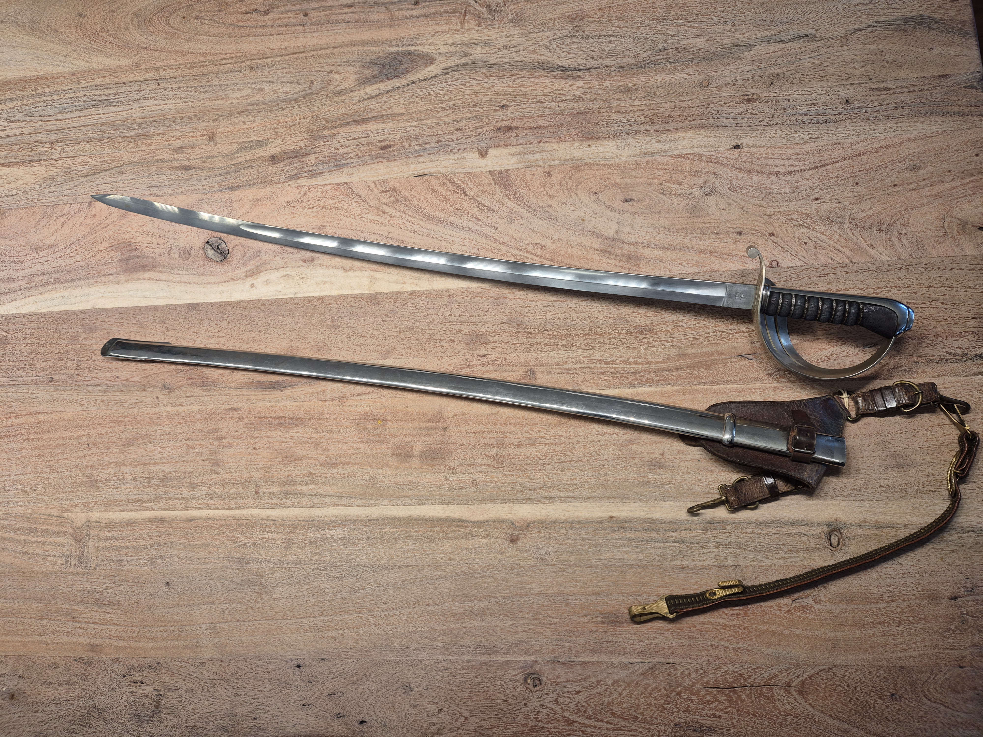 Tschechoslowakei: Säbel M. 1927, mit Herstellerbezeichnung "Wlaslovits Štós" und Abnahme "H Löwe" Griff mit Fischhaut und Drahtwicklung, in Scheide.