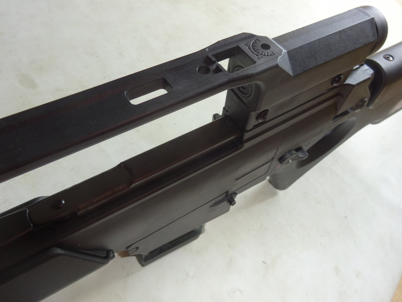 Bestückt mit Baugruppe des G36 aus Tragegriff mit integriertem Zielfernrohr 3 fach.