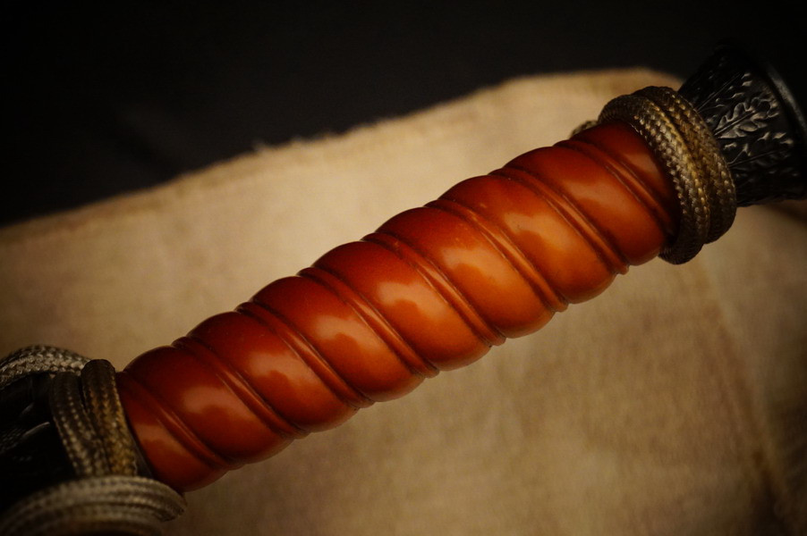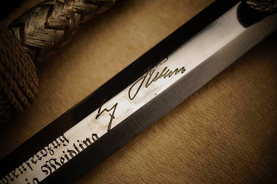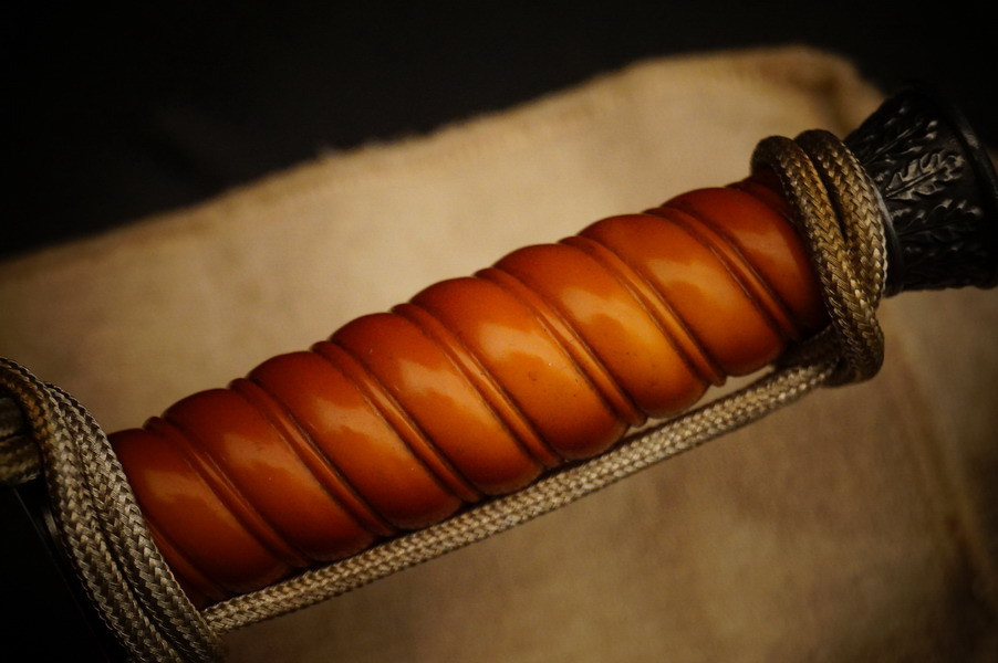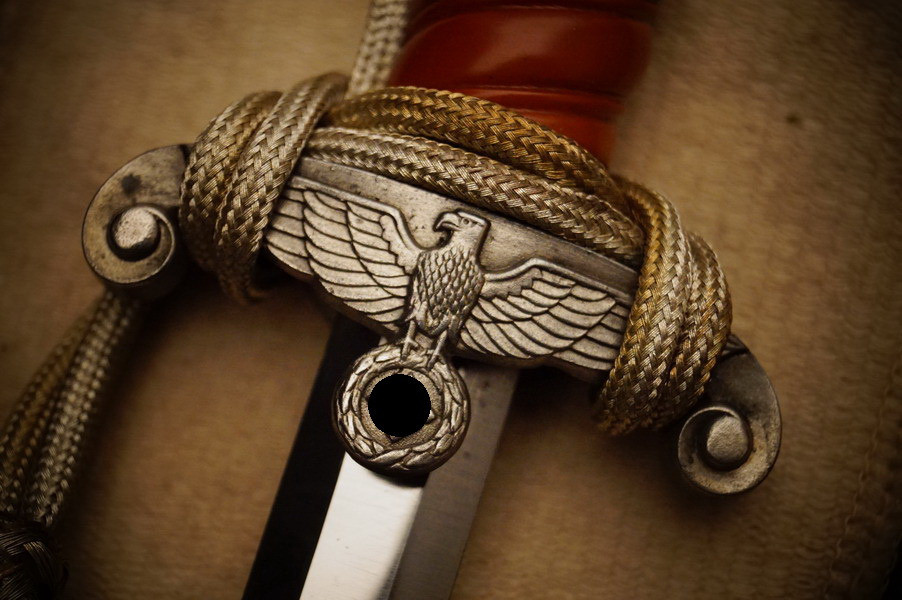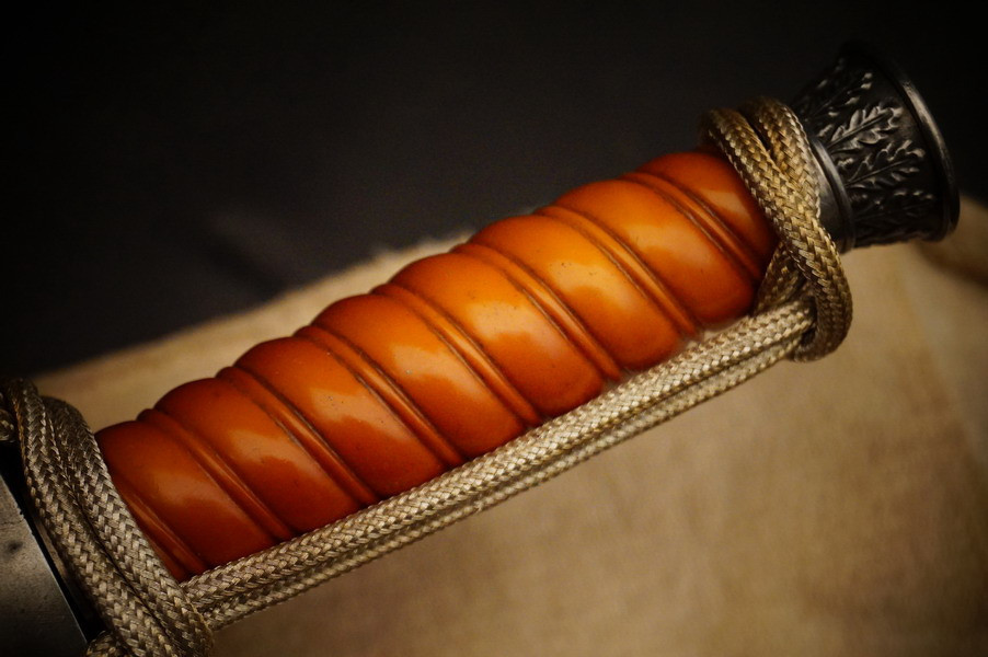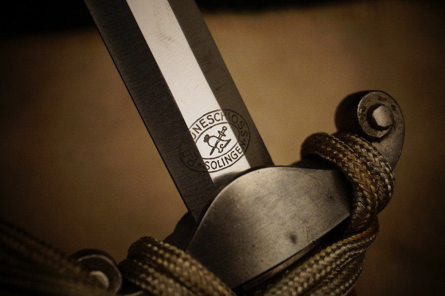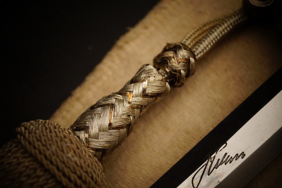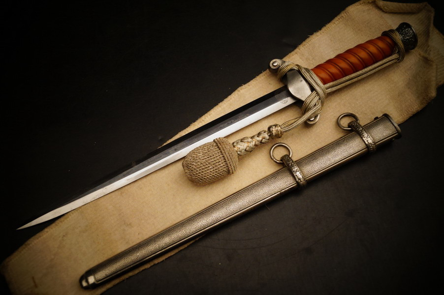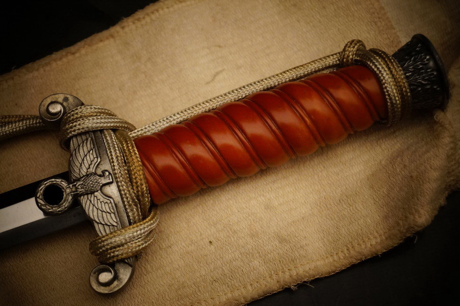Fundzustand. Stahlscheide mit der kompletten Versilberung. Klinge geschmiedet und mit Hersteller. Sehr feine Klinge und nur minimal Altersspuren. Griffstück ist lang und ohne Risse. Portepee teile mit Alu und Silberfaden vergoldet. Mit dem Schutzfutter bzw. der Tasche. Tasche ohne UV-Leuchten.