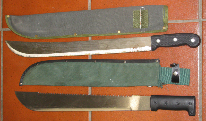 Zum Verkauf kommen zwei Macheten mit Scheide