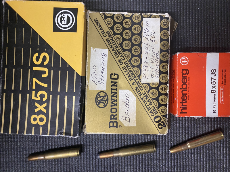 Ich biete aus einem Nachlaß ohne Garantie, Gewährleistung, Sachmängelhaftung und Rücknahme ein Konvolut aus insgesamt 47 Büchsenpatronen im Kaliber 8x57IS aus optimaler Lagerung an.