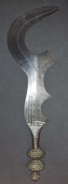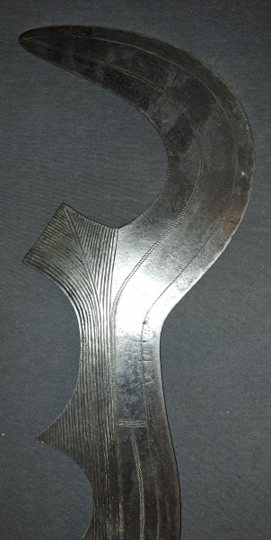 Biete hier aus meiner Sammlung dieses aussergewöhnliche Historische Prestigeeisen EXECUTIONSSCHWERT Ngombe zum Kauf an. Das Alter um 1880. Holzgriff mit Metallwicklung und Messing Polsternägel. Ritzdekor im Eisen. Wunderschön und Sammelwürdig . 60 cm. Absolut authentisch . Privatverkauf. Bilder sind Bestandteil der Beschreibung. Sollten Fragen zu dem Stück sein , bitte ich um eine Nachricht und versuche diese mit meinem Wissen auch gerne zu beantworten. Versand ins Ausland möglich.