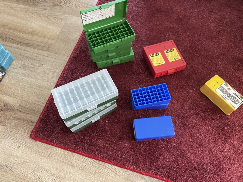 Verkaufe aus Nachlass Hülsen verschiedener Hersteller im Kaliber .357 Magnum und .38 Special und Munitionsboxen für verschiedene Kaliber. Die Hülsen sind teilweise entzündet.